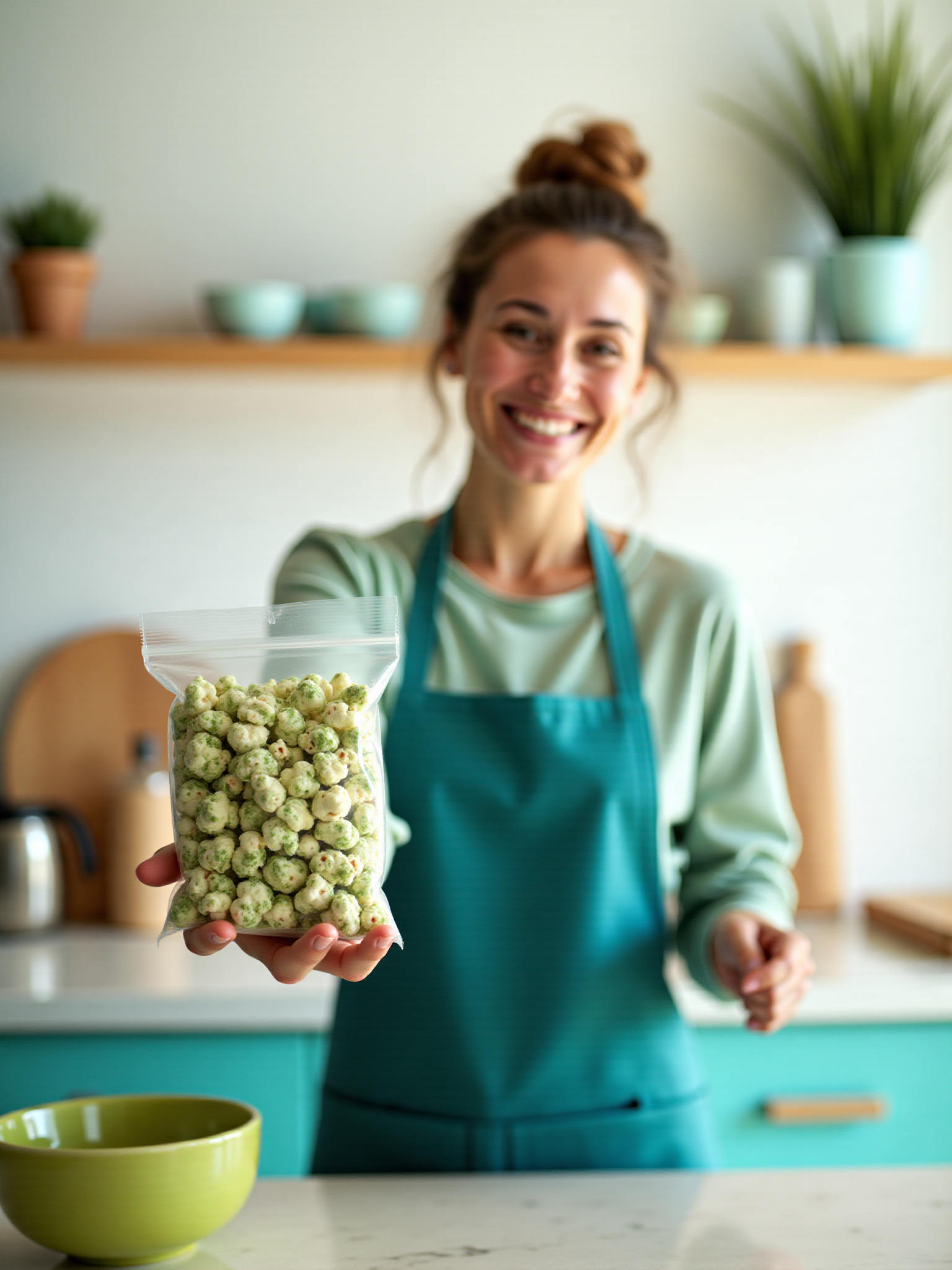 So we created a popcorn that’s air-popped, powered by spirulina — a snack you can feel good about eating, any time of day.